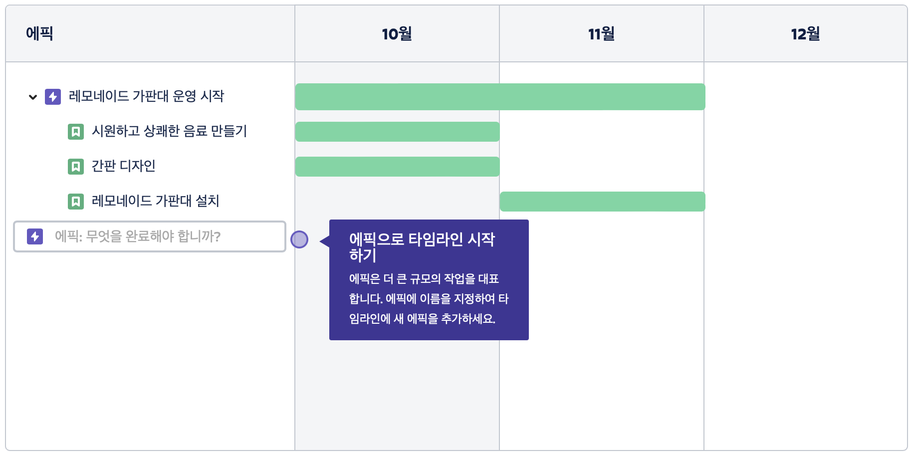 1. Jira는 프로젝트의 기능들을 타임라인 대로 정리할 수 있고,