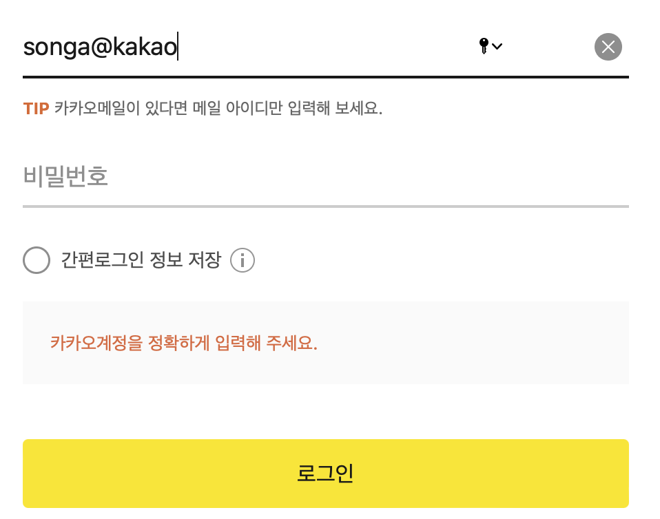 ✔️ 두번째 상황. 아래와 같이 이메일 주소를 입력할 때