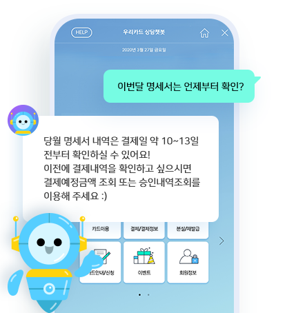 "이번달 명세서"는 "언제부터" "확인"과 같이 문장형태로 말하더라도, 맞는 대답을 얻어낼 수도 있게 되었죠.