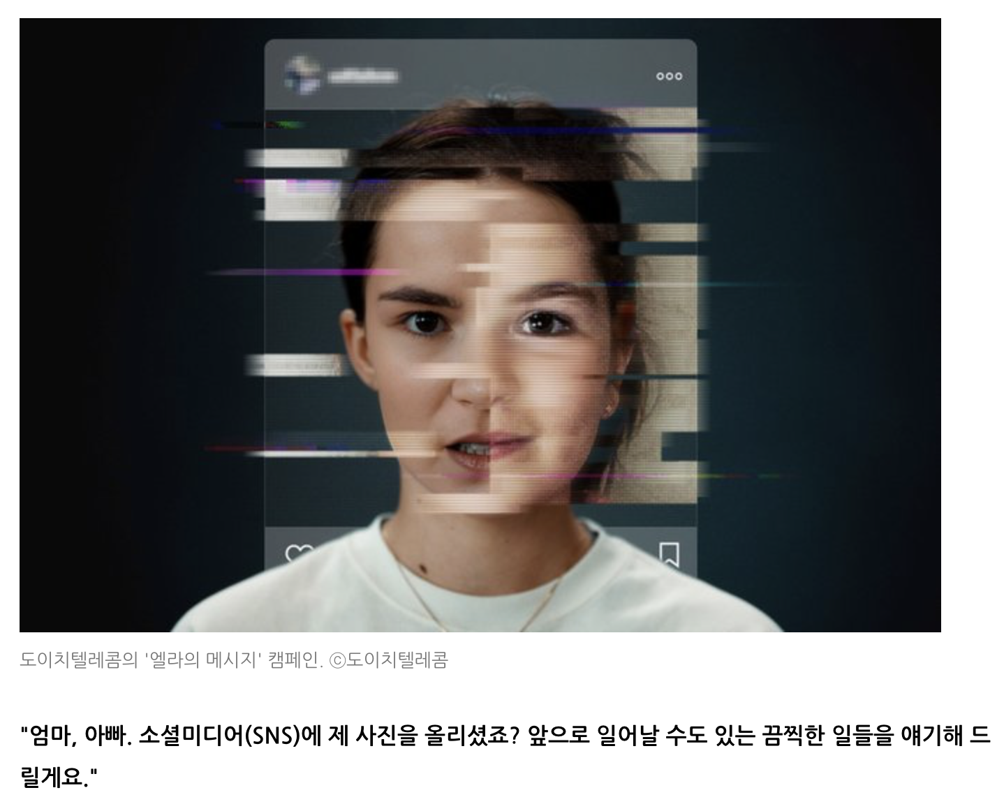 엄마, 아빠가 딸 사진을 SNS에 올리면 딥페이크를 이용해서.... 범죄가 일어날 수 있다고 알려주는......🫢 캠페인입니다....