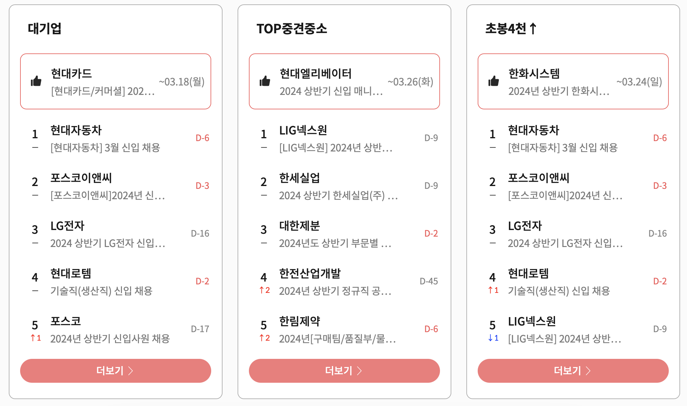 대기업/중견/상위10%중소 공고는, 캐치 | AI매칭 채용콘텐츠 플랫폼