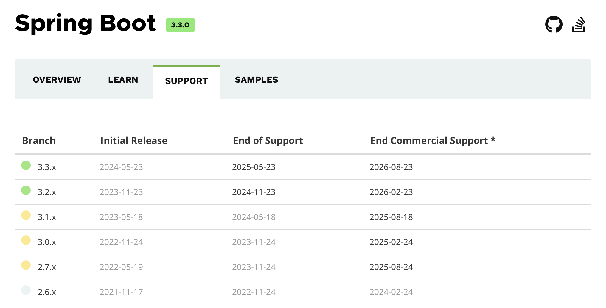 안녕하세요, 김송아입니다. 저희가 사랑하던 스프링부트 2.x 버전이 사라져버렸습니다.. 지원 기간이 종료되었기 때문이죠.. 😇 이젠,, 보내줘야하나.. 그치만.. 아직 회사들은 2점대를 쓰는걸...?