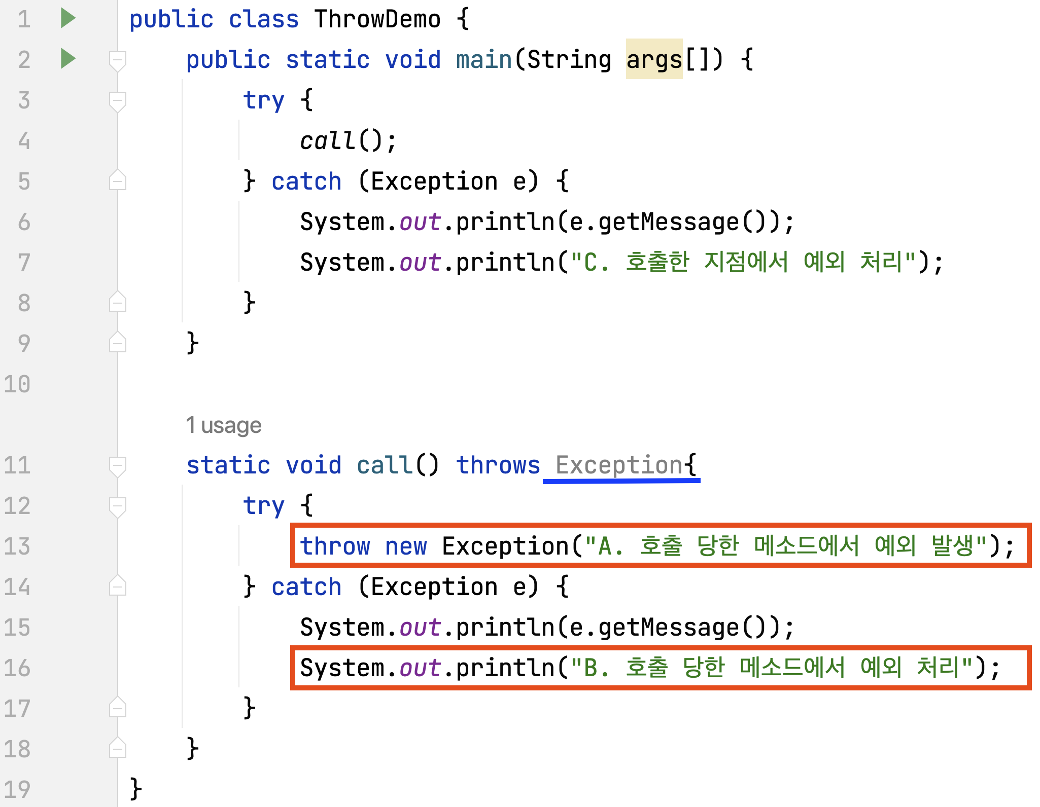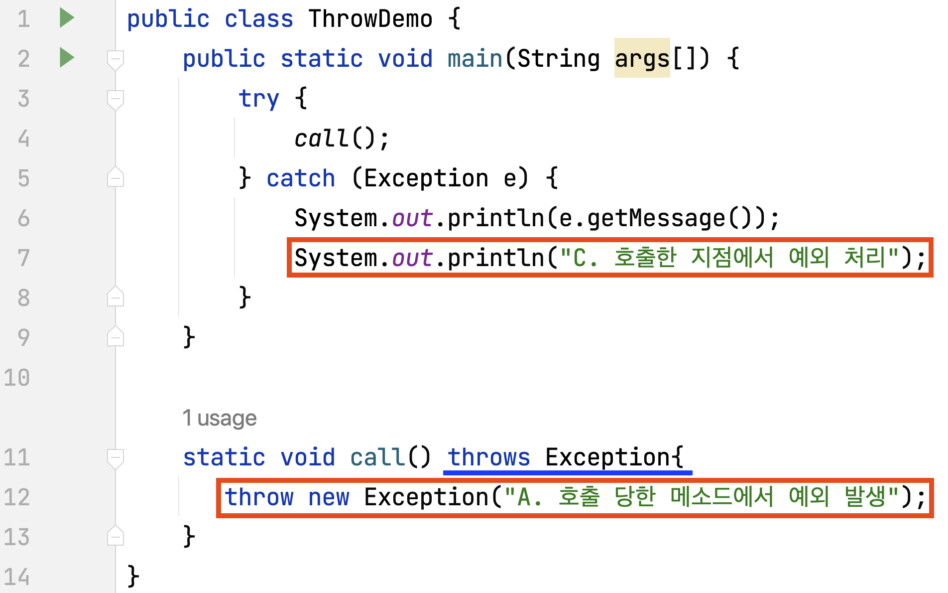 📌 throws는 예외 처리 책임을 전가하는 역할이다.