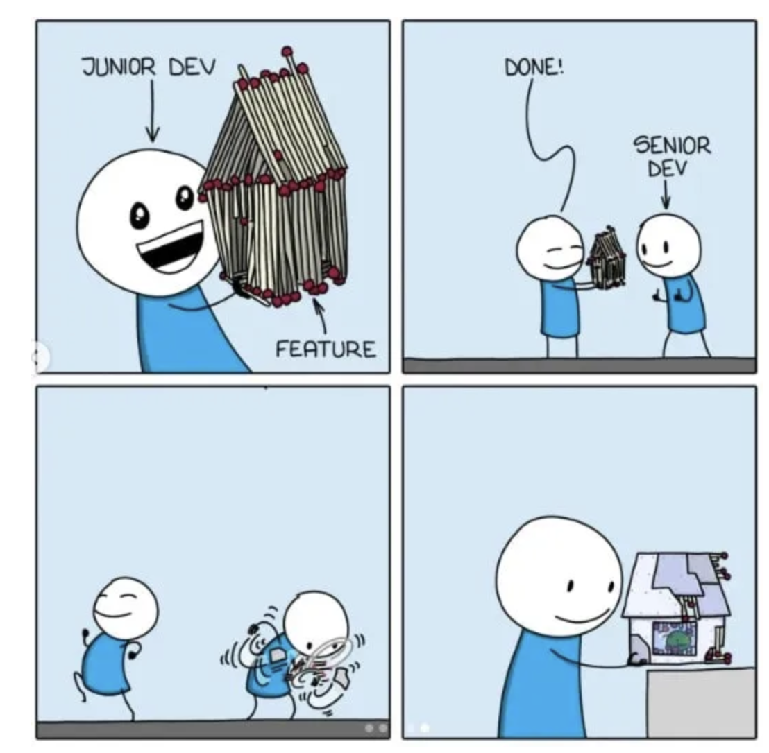✅ 시니어 개발자는 외관은 못 생기긴 했지만, 좀 더 튼튼하고 오래 갈 수 있는 것에 집중하는 것 같네요.