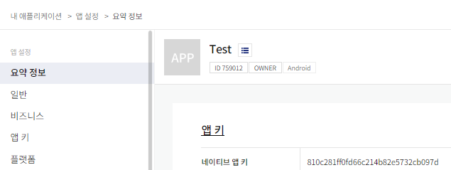 (2) https://developers.kakao.com/ >> 내 애플리케이션 >> 요약 정보 >> 네이티브 앱키 복사