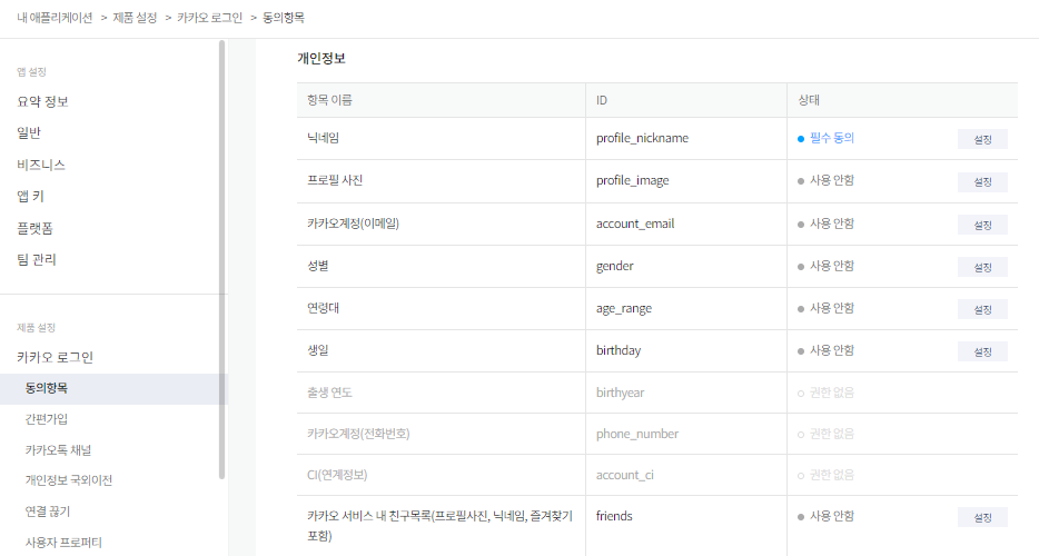 5. 카카오에서 받아올 데이터 설정
