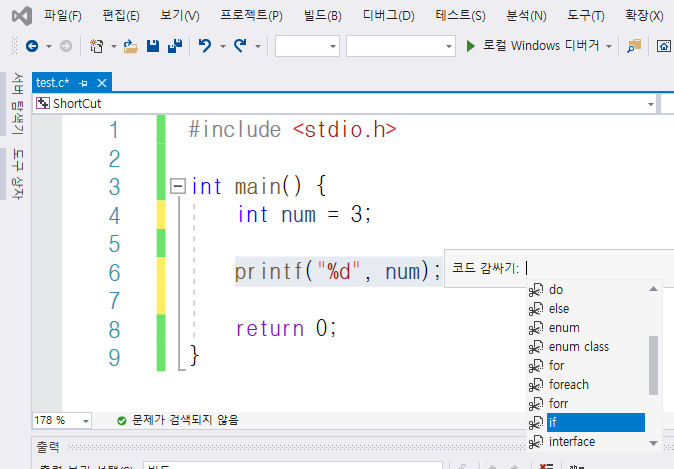 9. 코드 감싸기 ctrl + k + s